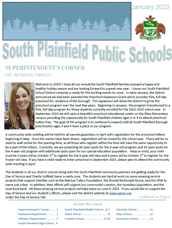 The Winter 2023 Newsletter for the South Plainfield School District is now available.